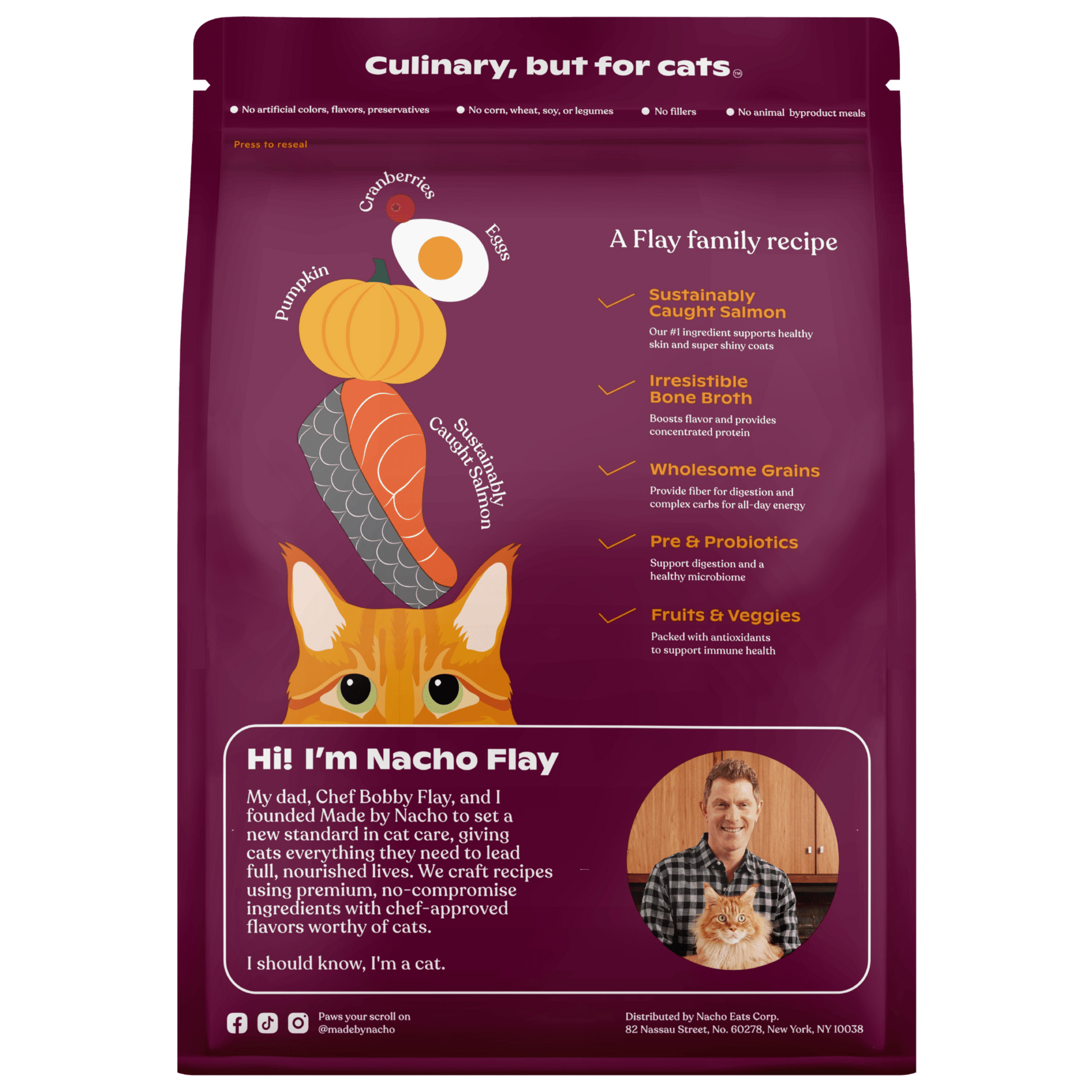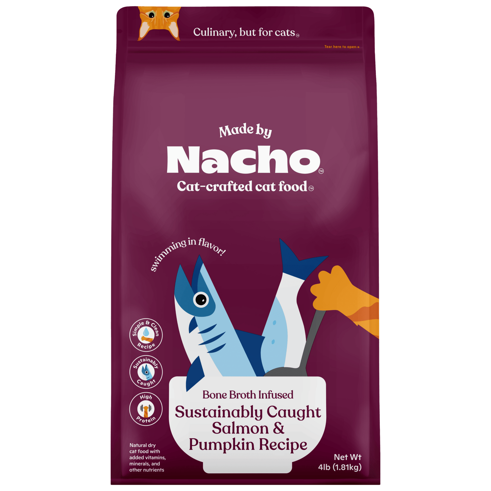 Made by Bobby Flay's Sustainably Caught Salmon & Pumpkin Recipe Dry Cat Food is a great choice for cats with picky eaters. It contains sustainably caught salmon, pumpkin, cranberries, and eggs, and is easy to digest. It also has a strong seafood smell, but cats seem to enjoy it. It is a great choice for cats with sensitive stomachs, as it is easy to digest.
