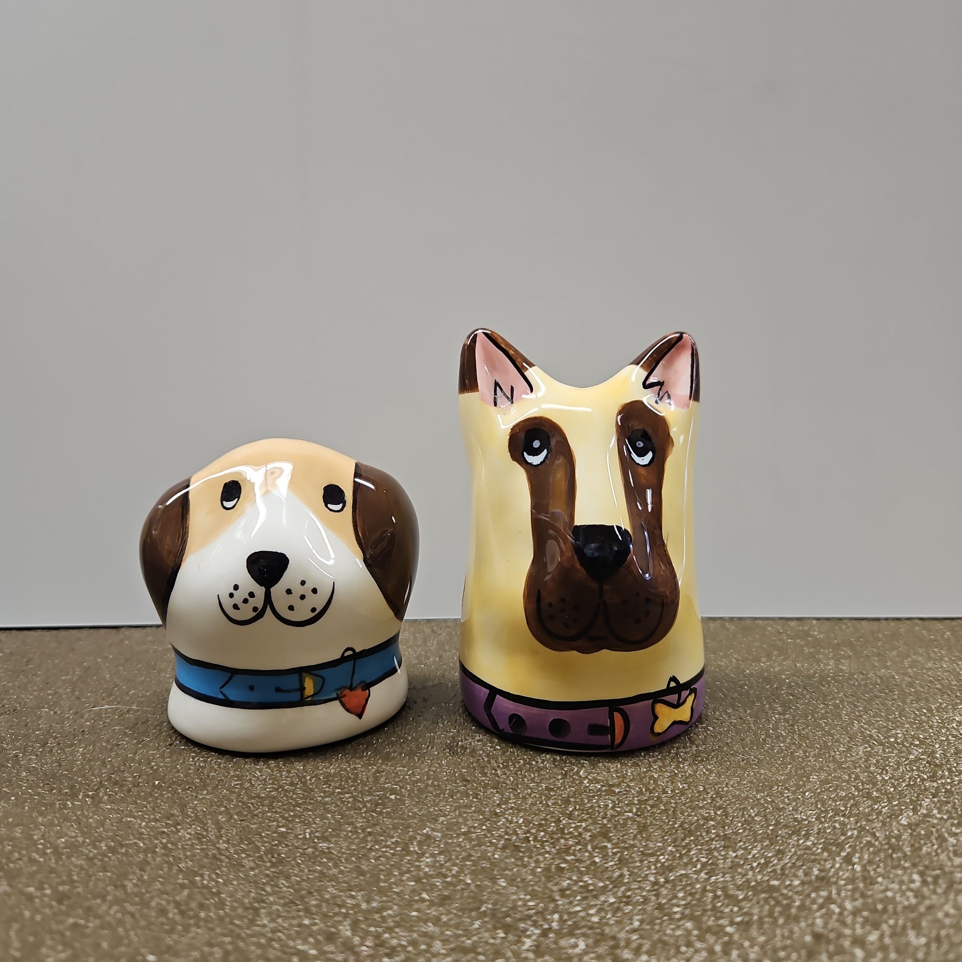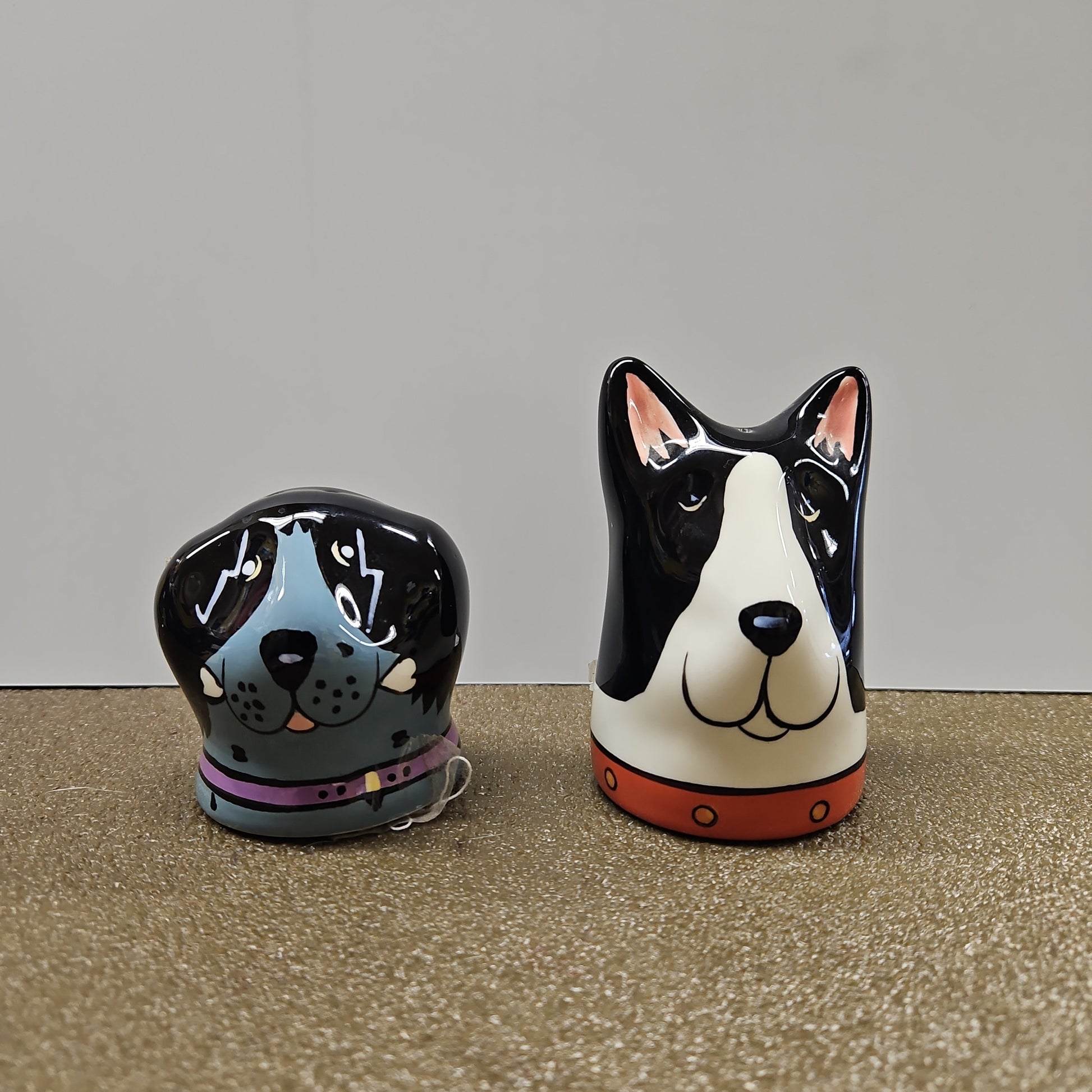 Candace Reiter Dogzilla Salt and Pepper Shaker Set, Whimsical Ceramic Dogs
