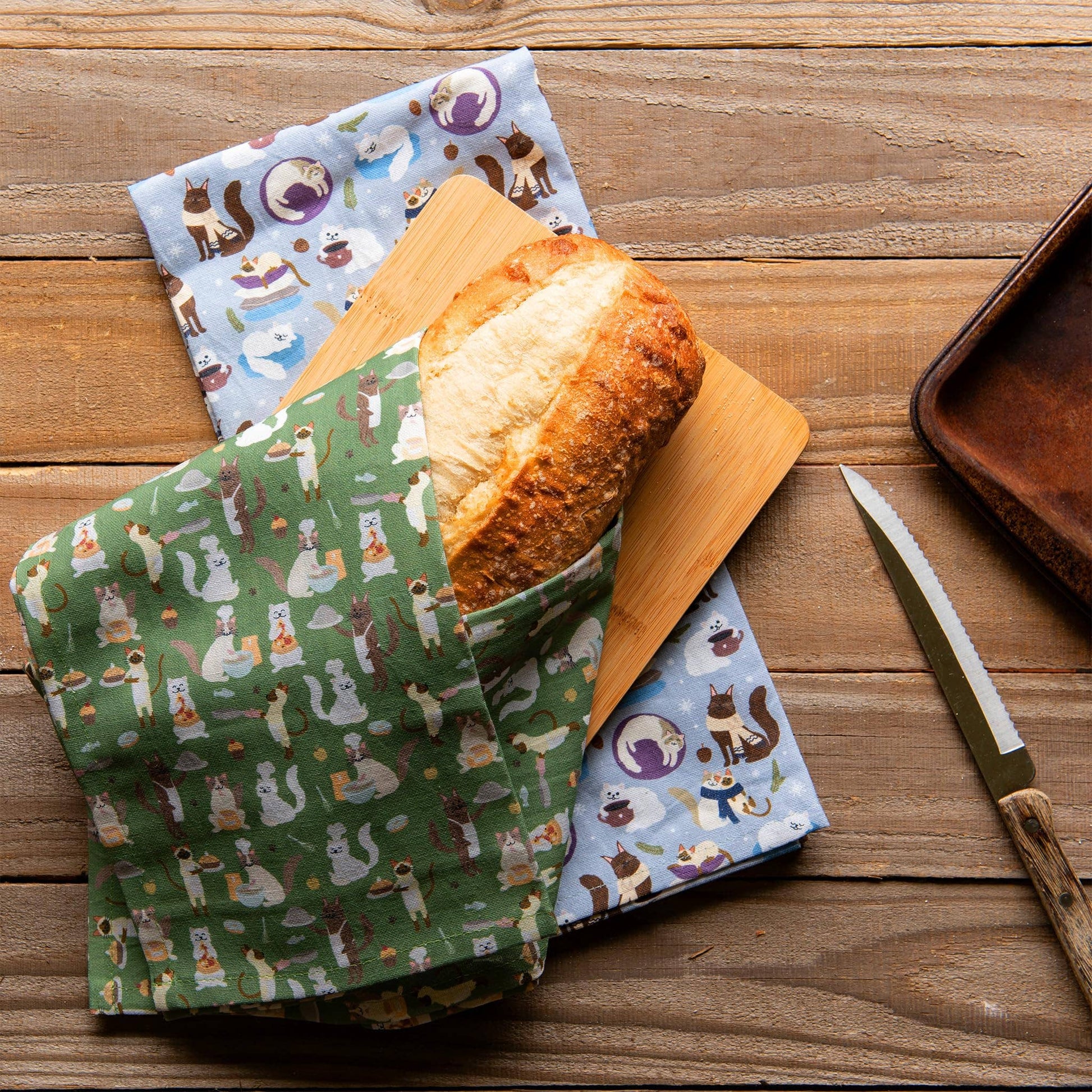 Feline Foodie Cats Tea Towel Gift Set for Cat Ladies & Cooks