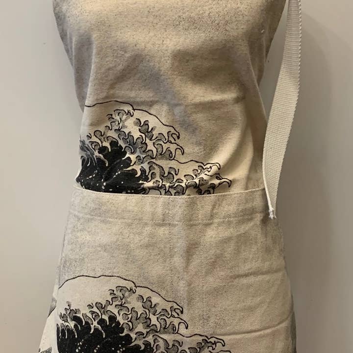 Get your maker on with our solid construction canvas utility apron. Adjustable neck, 2 pockets, PhotoReady for whatever you're creating! Hand Silk Screened - The Great Wave by Katsushika Hokusai is one of the most immediately recognized artworks. It has been creating waves in the art world for two centuries and it continues to make a splash in contemporary visual arts and design today.